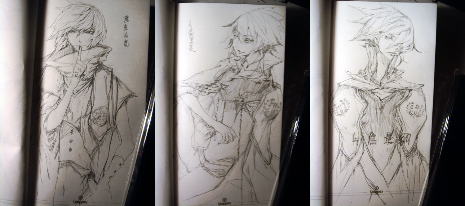 對比一下之前畫的草圖偶發現他頭髮末端應該沒那麼碎還要再平一點嗚……(誰讓你原始設定還沒畫完就興致高漲畫賀年繪……